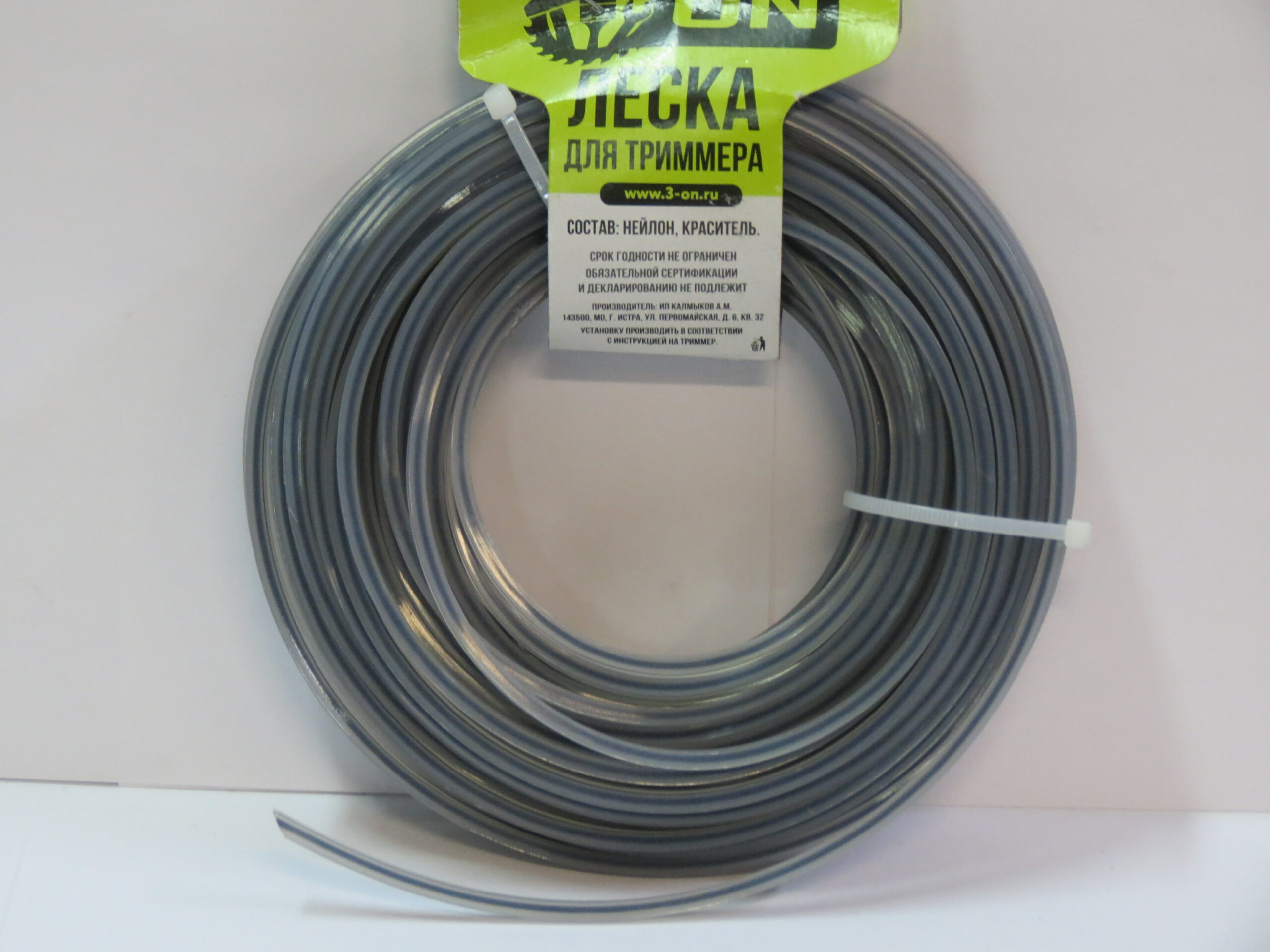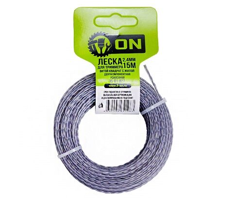 Леска для триммера квадрат/витой квадрат с жилой, 2.4мм х 15м // 3-ON